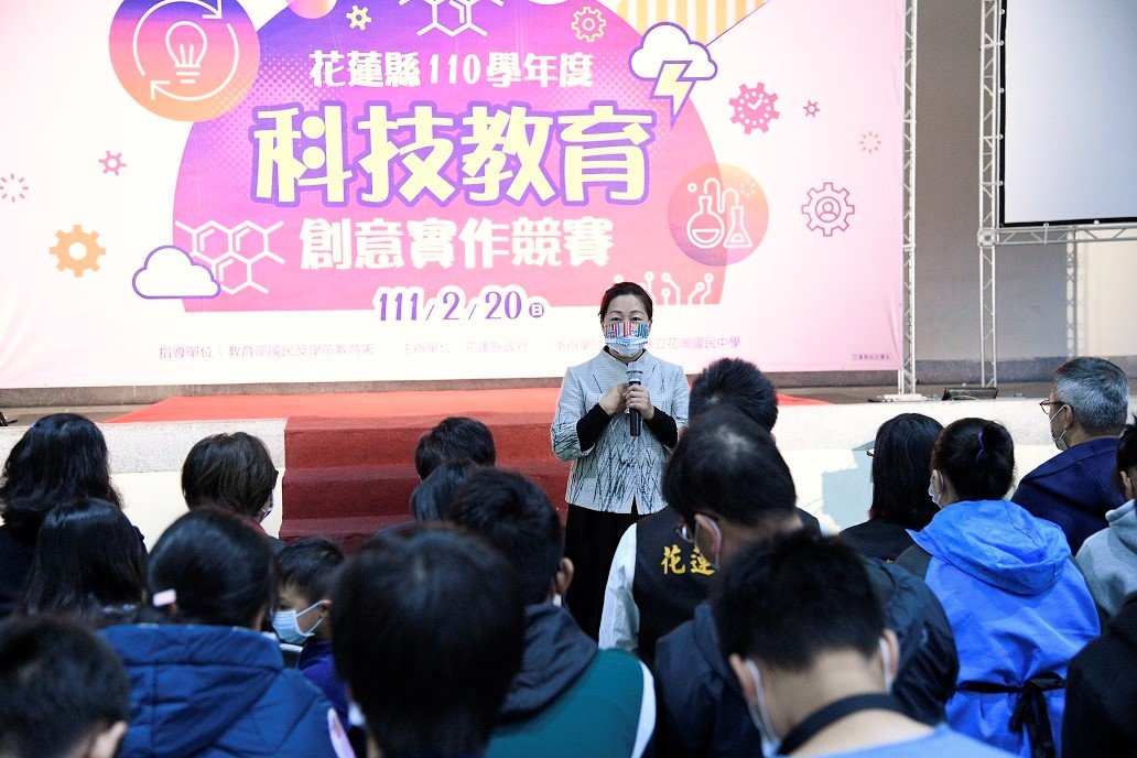 花蓮縣為提高教育科技素養,落實科技教育、鼓勵教師與學生行創意實作,花蓮縣政府教育處於今(20)日上午舉辦「110學年度科技教育實作競賽花蓮初賽」並由縣長徐榛蔚揭開賽事序幕,競賽項目包含生活科技組及資訊科技組,讓學生發揮創意,將想法透過實際動手製作,透過以物聯網(IOT)、人工智慧(AI)、虛擬實境(VR)、大數據等方式進行行問題解析與解決,由DIY延伸到DIWO(DO IT WITH OTHER)與他人團隊合作,學習共同製作及分享成果。