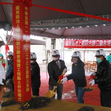 記者 謝廷瑋/池上報導 池上鄉公所現有廳舍老舊且空間不足,為提供在地更完善的公共服務,臺東縣政府協助爭取經費增 … More 池上鄉綜合辦公廳舍增建工程今動土