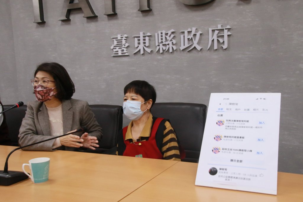 臺東縣政府昨日召開主管會報,並由警察局刑事警察大隊黃維和大隊長針對冒名創設陳樹菊女士粉絲專頁法律責任進行專題報告,陳樹菊阿嬤也到場提出說明,她是2月10日接到一通表達要拍公益廣告的電話而起疑,因此,請縣府協助處理,她個人沒有找人設立臉書,也沒有授權任何人代理,請社會各界不要受騙。