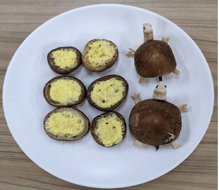 此次分享的料理不僅是吃飽而已,同時也兼顧擺盤等視覺享受,做香菇蒸蛋的時候,可以用香菇做隻可愛的香菇烏龜,增加做菜的樂趣。香菇做的烏龜可微波後食用,張淑君主任祝福大家動手料理增健康,享用美食同時也能如龜鶴遐齡。