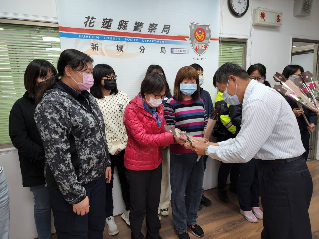新城警分局長林育旺為感謝女性同仁平時除了警政工作之外還要兼顧家庭,於是在今(8)日婦女節向新城分局每一位女性同仁致贈玫瑰花,感謝及肯定同仁平時工作的努力與表現,並祝大家婦女節快樂。