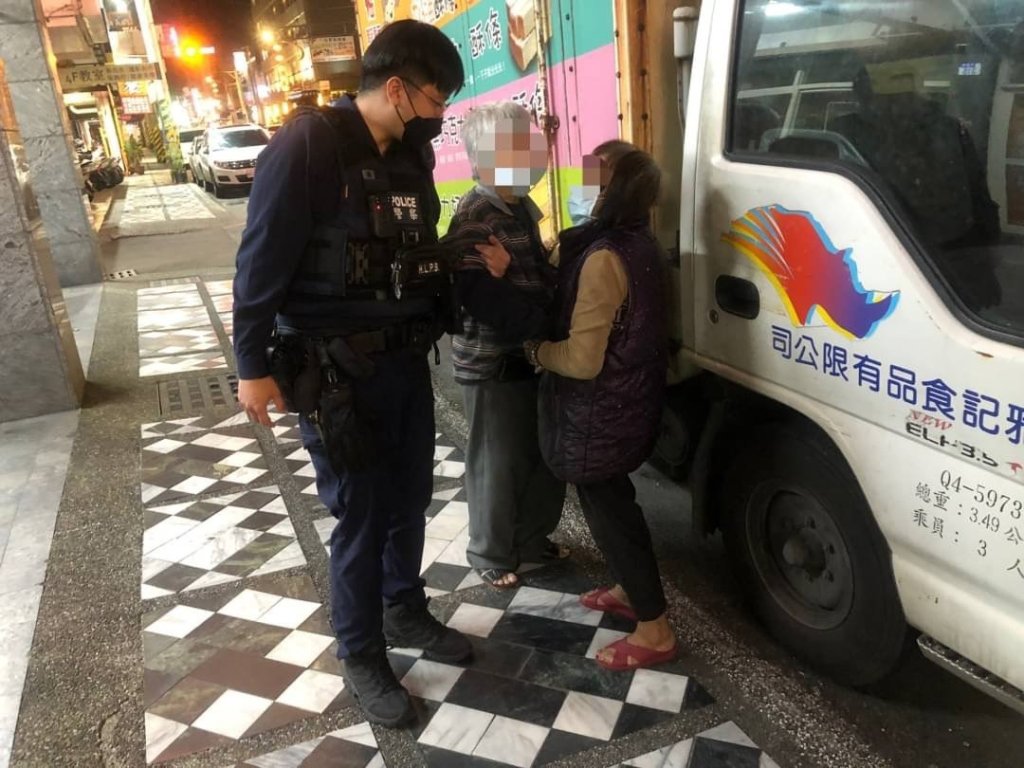 花蓮警分局中華派出所接獲民眾報案稱疑似有失智長者迷途,員警彭依傑、童毓欣趕赴現場,見一名老翁無助蜷曲在一處民宅前、無法自行爬起,立刻向前關心,老翁對答如流,且知悉個人資料、住家等資訊,員警遂攙扶老翁上巡邏車,護送其返家。