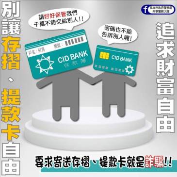 記者 謝廷瑋/高雄報導 有急需用錢嗎?被生活壓得喘不過氣?詐騙集團還會再削你一筆!當急於找一份工作或是辦理貸款 … More 申辦貸款找偏方 反成人頭帳戶惹是非