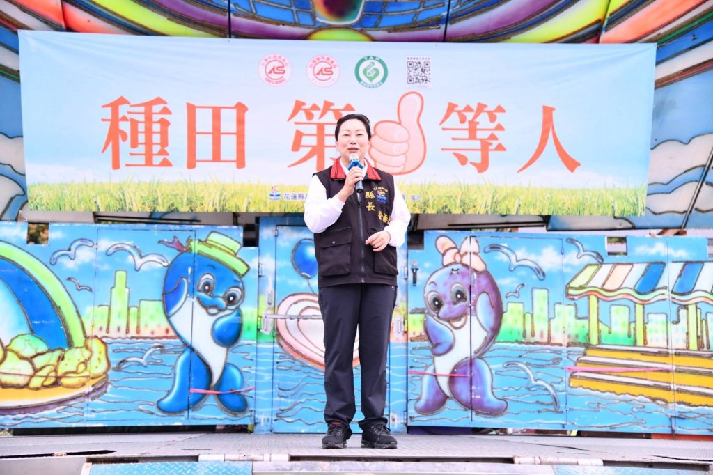 縣長徐榛蔚首先與參與農民節的所有貴賓及獲獎農友致意,感謝所有對農產貢獻良多的所有農民夥伴,在疫情期間也持續行銷花蓮農產,開出十分亮眼的成績。這次經由農民節活動,不僅是推廣富里優質的農產品,更期許透過富里鄉,讓有機農業拓展至花蓮各鄉鎮,而花蓮產出之有機產業為全國之冠,也同時發展六級化產業,從春夏秋冬,皆有旅遊行程規劃,讓更多人看見富里,看見花蓮。希望富里鄉的農友們在未來更能支持縣府各項業務的推展,讓我們一起達成目標,讓世界看見富里,讓花蓮走向國際。