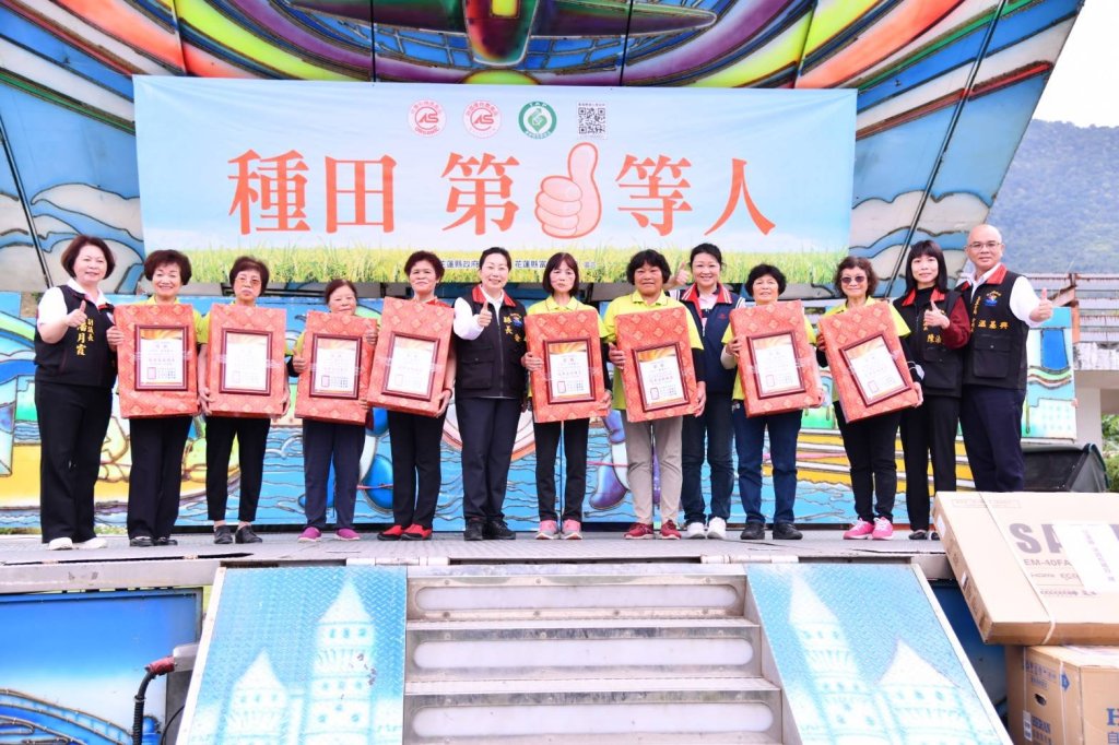 現場由徐縣長表揚所有優秀農友,包含2021年花蓮蜜香紅茶製茶技術競賽季軍-傅振哲、2021年蜜香紅茶評鑑比賽銀牌-林俊傑、2021年蜜香紅茶評鑑比賽銅牌-蕭文龍、2021年創新經營管理經驗分享競賽亞軍-黃治鴻以及表彰對於農業貢獻有功人員及農民(吳江、萬寧、新興、明里、羅山、富南、學田、永豐、豐南,東里、竹田、石牌、富里)、家政班班長、優秀義警、優秀農業師傅、優秀青農等共計127名。