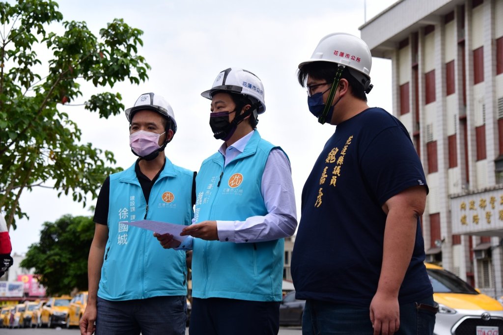 花蓮市長魏嘉賢昨16日下午偕同建設課長徐國城前往火車站前視察路面刨鋪工程,魏嘉彥議員也到場感謝花蓮市公所重視民意,在最短時間內完成改善作業。魏嘉彥表示,他是收到排班計程車司機反映,指東站南側的柏油路面有多處龜裂及坑洞,不僅影響行車品筫,也有礙瞻觀,因此在接到陳情後,立即邀請魏市長及建設課長徐國城,以及台鐵花蓮站長林德香、運務段長吳金添等人到場會勘。