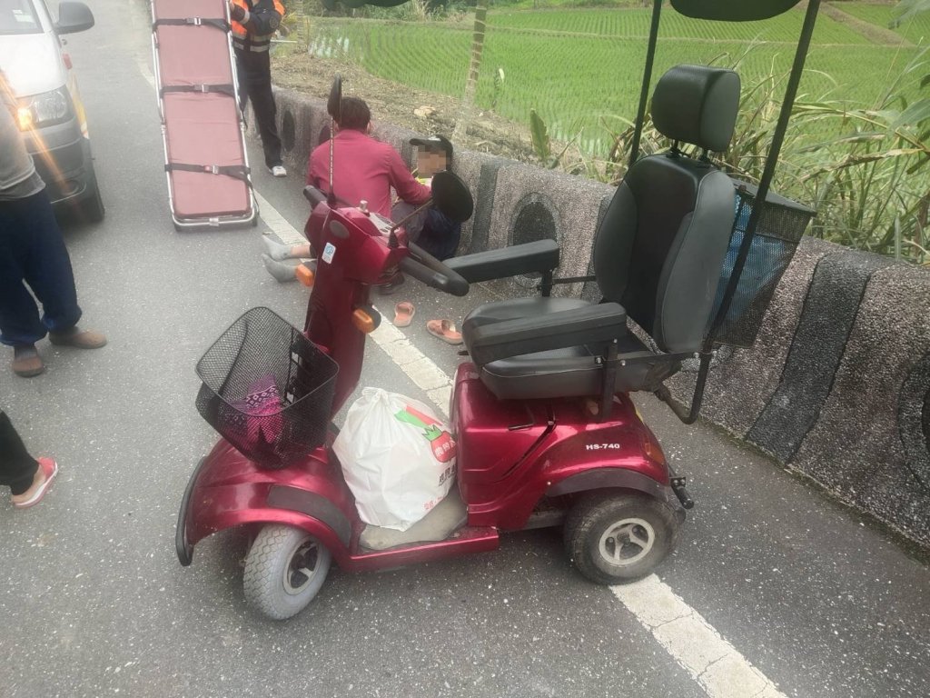 副所長陳彥螢立即前往處理,發現一名91歲陳姓老翁倒臥路旁,隨即將老翁攙扶坐起,再將四輪電動車推至路邊,觀察後發現老翁臉部有輕微擦傷及雙腳無法使力,便通知豐濱消防隊救護車到場將老翁載往豐濱醫院治療,經了解該老翁騎電動代歩車出門至豐濱農會超市購物後返家途中,電動代歩車於上坡路段不慎發生翻車意外,所幸被路人發現報警,老翁與家屬非常感謝警方即時協助救援送醫。