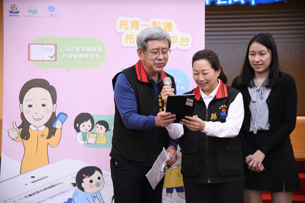 花蓮縣政府極力推廣數位工具建構智慧治理創造智慧城市,徐縣長特別為托育家長打造智慧托育平台,利用「托育媒合」APP一鍵尋找保母,保母也能透過智慧平台行銷自己,家長與保母簽訂契約後達成「托育綁定」,進入智慧平台「加值服務」,電子化聯絡簿紀錄幼兒學習成長更便利,家長輕鬆查詢幼兒飲食、如廁情形,另外還有發展篩檢功能,掌握孩子發展黃金時期。