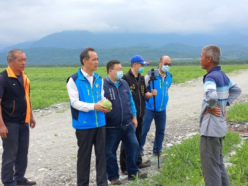 近日,有鎮上農民反映西瓜的生長及施作情況不如往年良好,鎮長江東成關心瓜田的生長情形,今(31)日下午3時30分率領農業課課長葉佳棋至三民里黃姓農民的西瓜田進行勘查及關心。玉溪地區農會總幹事蔡宗翰及三民里里長蔡貴富皆到場瞭解與關心。