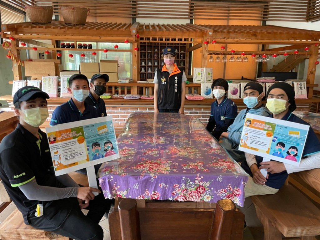 因應清明連假將至,加上國內疫情有升溫趨勢,為防止移工朋友因為群聚而造成疫情傳播;主管外事業務第三組組長林國銘特別責由承辦人警員陳奕涵親至轄內磊信砂石廠、花東製米及格全食品等雇用較多移工公司加強宣導,希望移工朋友能落實防疫措施,同時希望連假期間減少跨縣市活動及拜訪外縣市朋友。
