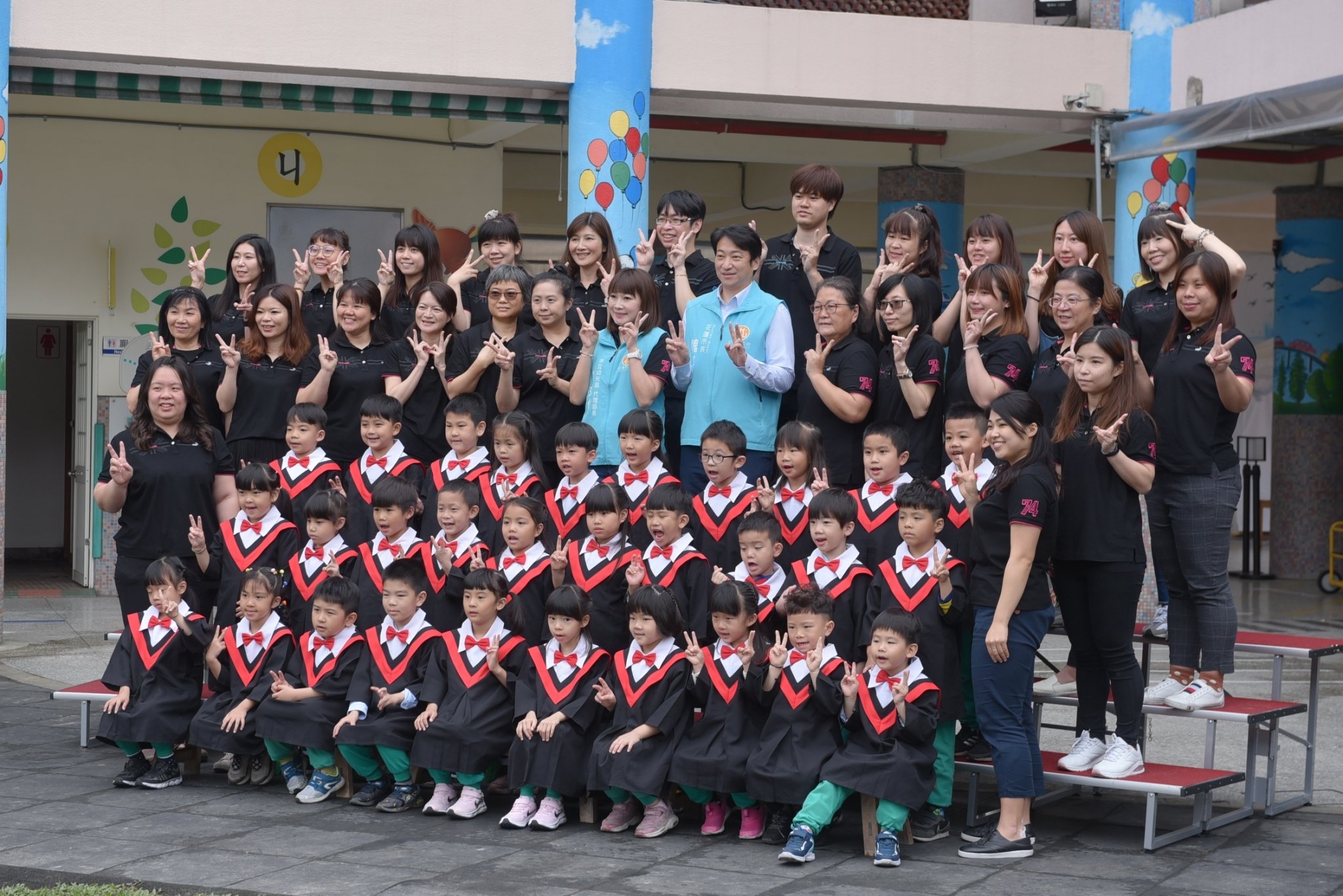 市長魏嘉賢表示,幼兒園的孩子即將從大班畢業,準備轉換新的學習環境,這是人生重要的里程碑。感謝幼兒園李園長、所有的老師及職員們,一路上用心照顧孩子,讓每一位孩子都能健康快樂的長大。銜接教育是園區教育非常重要的一環,期許孩子們在進入小學後都能派上用場,並能快速適應新的環境,祝福大家在新的班級與新的同學相處都能順利,也歡迎未來常回到幼兒園看看園長及老師們。
