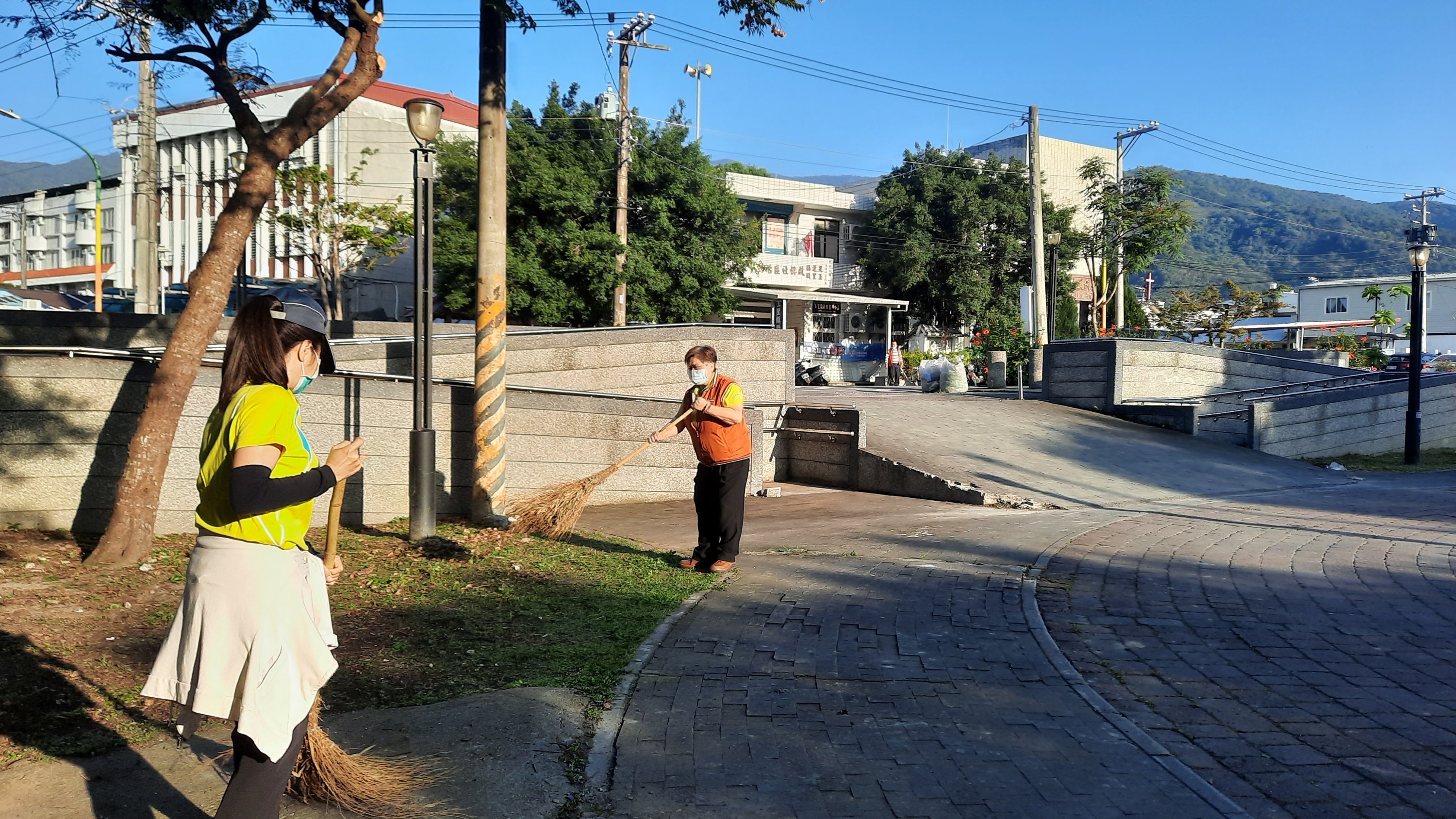 鎮長江東成於日(7)前甫至鎮民廣場進行勘查,關心鎮民廣場的使用現況,深知鎮民廣場對於鎮民們而言是日常放鬆身心及休閒活動的重要場所。江鎮長日(7)前特別呼籲鎮民們共同維持環境且注意整潔,今(9)日便拿起工具整隊出發,率領公所同仁及各環保志工隊(團)、救國團等邁出環境清潔的第一步,打掃、整理鎮民們最心愛的家園。