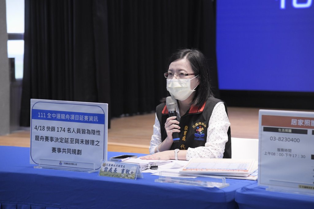 教育處代理處長翁書敏針對全中運龍舟項目賽事延賽資訊說明,昨(18)日被匡列之選手及隊職員共174名人員,快篩結果皆為陰性;站在首重防疫、健康第一之前提,經全中運執委會決議,全中運龍舟再延賽至未辦理14項賽事復賽一併辦理。