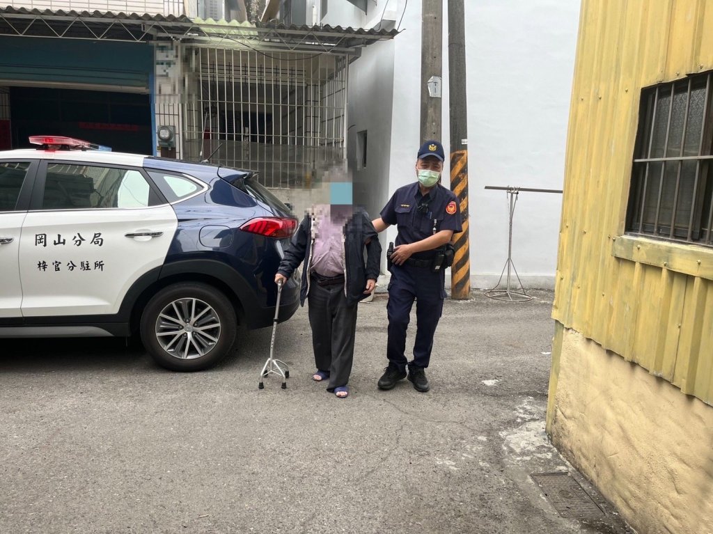 經員警到場發現有一位老翁杵著拐杖吃力的站著,雙眼透露著無助的眼神,員警見狀便立刻上前關心詢問;得知該位老翁姓黃,高齡77歲,有中風病史所以行動較為不便,平時活動需要依賴助行器,當天是為了前往距離住處約200公尺處的電信公司繳納電話費,所以獨自一人拿著拐杖,從家中出發,走到距離電信公司約2公尺處,卻發現體力耗盡,已無法再提起腳步向前,才會在原地休息,順便看看是否有認識的人經過可以提供協助;