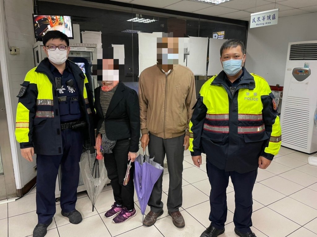 無獨有偶,文聖所巡邏員警葉明儒、林瀚邦日前接獲報案,報案路人向員警表示有名老人家走失;經查該名劉姓婦人因欲還錢給朋友故自行出門,惟出門後即忘記朋友住家地址,亦忘記如何返家,員警經與劉婦談話中拼湊線索,並查詢得知劉婦身份年籍及家人聯絡電話,通知其丈夫陳男將劉婦帶返家,陳男非常感謝警方的協助。