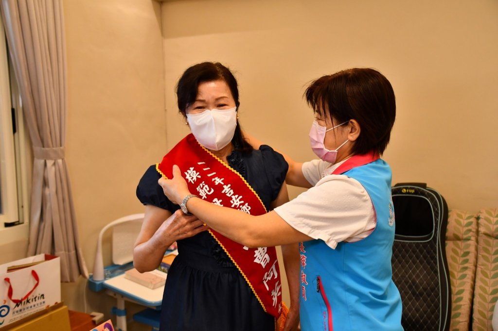 得知鄉長將前來拜訪,每位媽媽們換上衣櫃裡最捨不得穿的那一套衣服,拿出「喜慶限定」並鑲有「大蕊」珍珠的項鍊首飾悉心盛裝裝扮,鄉長游淑貞親自為媽媽們掛上表揚彩帶,並連同村長、公所團隊及子女獻上最誠摯的賀禮與祝福。游淑貞表示,媽媽們不僅用一生奉獻在家庭,更將大愛延伸至社區村鄰,投入社會志工服務,發揮百分百的女力精采,因此相信每一位母親臉上的流露的不只是歲月的痕跡,更是幸福圓滿的累積。