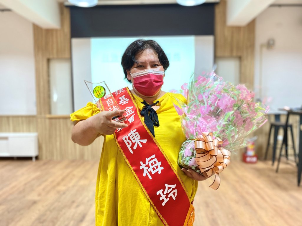 總是笑臉迎人的陳梅玲,和前夫生下兩名子女後,因感情不睦波及孩子,選擇離婚後獨自扶養小孩,直到再次遇見伴侶,兩人陸續生下愛的結晶,努力辛勤為家庭付出,只是沒想到伴侶因罹患癌症而病逝,養育六名子女的重擔全落在她一人身上,育兒的艱辛,使她成為孩子心中的鋼鐵媽媽,並獲得111年家扶基金會全國自強母親表揚。
