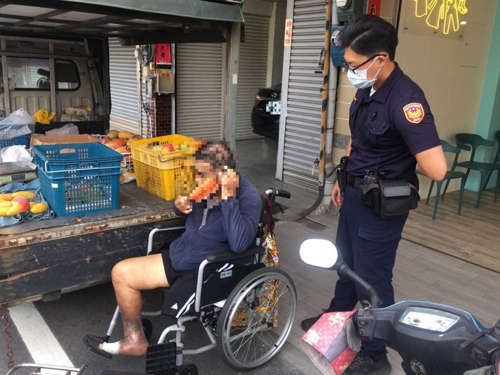 日前5月8日8時許,高雄市政府警察局岡山分局彌陀所接獲民眾報案,彌陀區中正路上一間自助洗衣店內,有一位男子似乎需要協助;該名孫姓男子(43年次)向到場員警表示,原先要前往長庚醫院就診,但坐車途中發現忘記攜帶看診文件就此作罷,隨即告知司機路邊下車,準備自行返家;可是孫男的左腿染疾,已截肢多年,平時都仰賴手動式的輪椅行動;靠著輪椅行動的孫男走沒多久就滿身大汗,打算到附近自助洗衣店內休息一會;路過的民眾看孫男無助可依,便通報警方前來協助 。