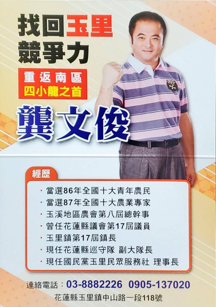 龔文俊歷年來不論是在何種場域發展,都因獨特思維發展獲得讚賞認可,所以累積了各階層許多良好人脈。這也讓他總能無往不利,迅速見到績效。在玉里鎮這三年建設無發展、鎮庫失血,導致失去競爭力的劣勢下,唯有龔文俊擔任鎮長才能讓玉里鎮迎頭趕上失去的發展,再度成為南花蓮四小龍之首。