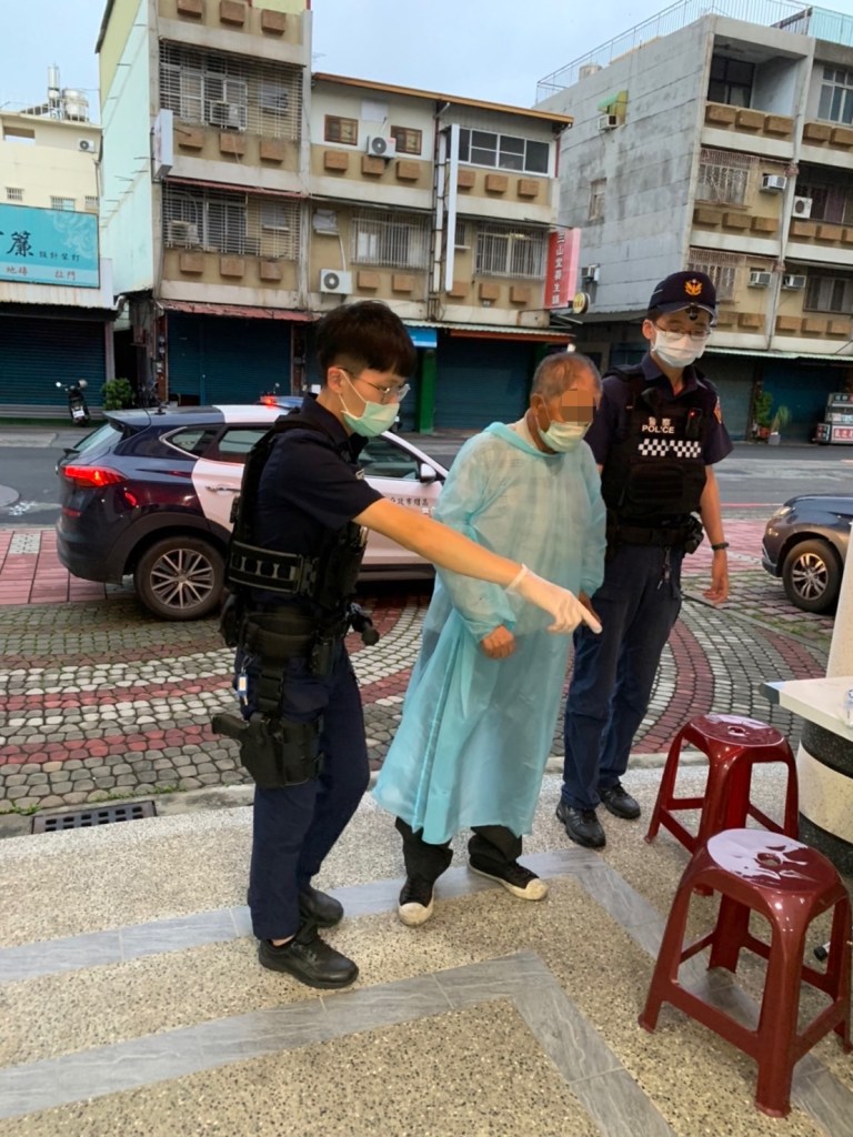 高雄市政府警察局岡山分局壽天派出所警員詹育豪、施富元等2人日前巡邏執勤時,於岡山區岡山北路旁發現有一名老翁,獨自一人兩眼無神呆坐在商店前,便上前來關懷協助;經員警查證身分發現,該名老翁竟是鳳山分局通報緊急協尋之失蹤人口;員警心想老翁應該是迷失至今都尚未進食且碰上梅雨季節的豪大雨,導致虛弱無力的呆坐在路旁店家外休息;員警了解後隨即便將老翁攙扶上車載往壽天所休憩並為老翁準備熱食及飲用水補充體力。