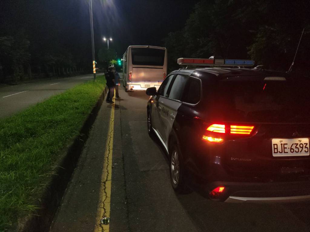 高雄市政府警察局岡山分局鳳雄派出所所長王龍安、員警莊翔壹等人,日前執行夜間巡邏勤務時,巡經燕巢區高鐵總廠路發現有一輛公車拋錨停卡在車道上動彈不得,警方見狀立即趕赴上前關心查處。