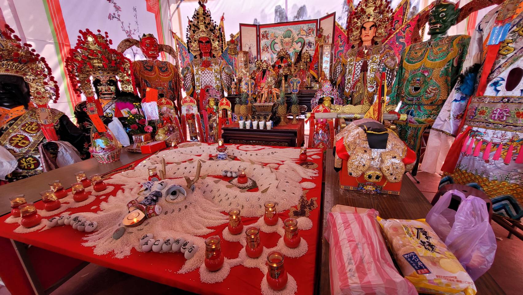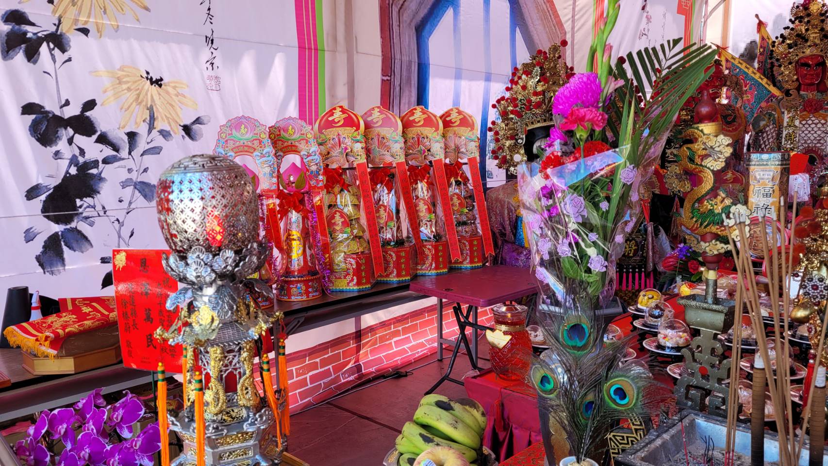 下午13時是信眾們最為期待之重頭戲藝陣參拜正式熱鬧登場,花蓮境內各友宮前來祝壽,以及傳統藝術陣頭文化表演交流,把祝壽現場擠得水洩不通好不熱鬧,可說是陣頭界的嘉年華會。參訪藝陣多達30團,有傳統式八家將、官將首、北管八音、神轎聯誼、神將表演、布袋戲賣力演出等,現場擠近兩千多人觀看期待已久的祝壽嘉年華。