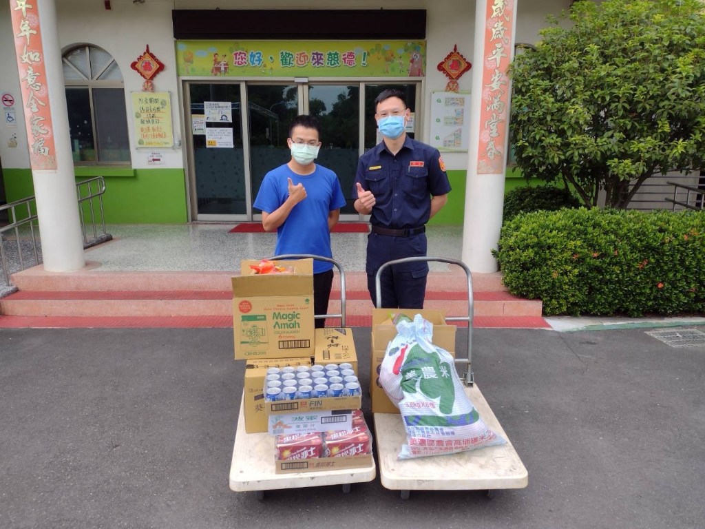 8月9日16時許,岡山分局甲圍派出所員警及義山宮人員至燕巢區湖內巷慈德育幼院,發放義山宮捐贈愛心物資及慰問品。