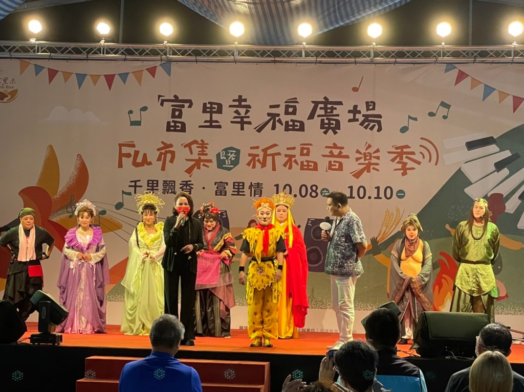由富里鄉公所主辦的「富里幸福廣場Fu市集暨祈福音樂季」今(8)日在富里鄉羅山村富里幸福廣場正式開場,藝人陳亞蘭及白雲率歌仔戲團暖心演出為富里居民加油打氣。