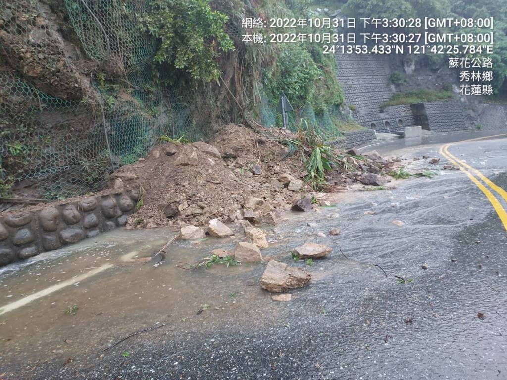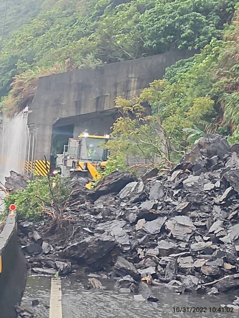 受奈格颱風外圍環流及東北季風共伴效應影響,蘇花路廊今(31)日 上午10時35分於台9線119.4K(東澳至南澳共線路段)發生上邊坡坍方道路阻斷,經公路總局第四區養護工程處南澳工務段搶修團隊積極搶修,已於下午2時搶通單線,為避免土石坍滑於路面,現場構築土堤,於下午2時30分採單線雙向警戒通行。