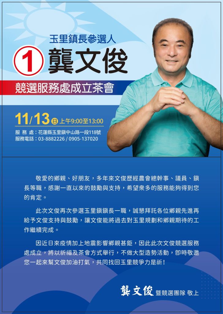 再過18天就要選出新的鎮長,希望新的鎮長能夠主動、積極、親力親為,如同江鎮長一樣,主動發現問題,面對問題,解決問題。這才是玉里鎮民之福。