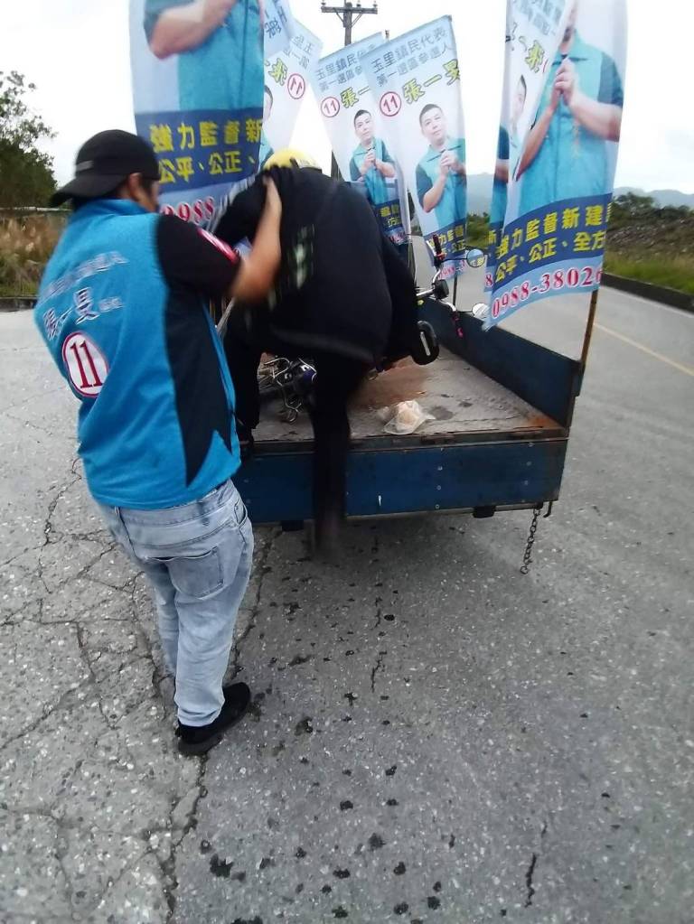 一名江姓讀者稍早與記協聯繫,說傍晚五時10分行經長良里時,發現玉里鎮民代表第一選區候選人張一旻的宣傳車與自行車在路中,原本以為是車禍想要上前去幫忙,驅前了解之後,才知道原來是騎電動自行車的阿伯半路遇到沒電,恰好張一旻的宣傳車經過停下來協助阿伯,宣傳車將自行車與阿伯載回家。