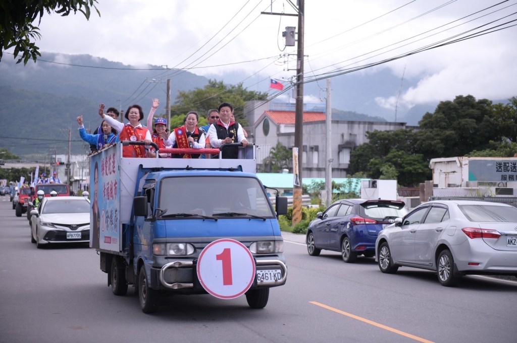玉里為全台灣最大的鎮,幅員遼闊,還有許多地方月霞還沒有走到,月霞後援會今日召集車隊一同拜票,希望能親自走到玉里的每個角落與大家請託。