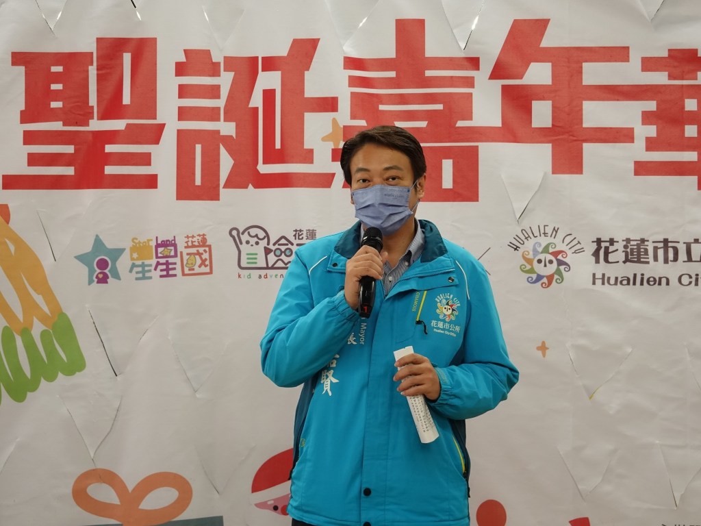 花蓮市長魏嘉賢表示,花蓮市立圖書館與青年共創發展協會辦理一整天的活動,希望藉此觸發小朋友對閱讀的熱情、體驗閱讀的樂趣,也能感受到濃濃的聖誕節氛圍,最後也祝福每一個孩子都能在快樂的環境中學習與成長。