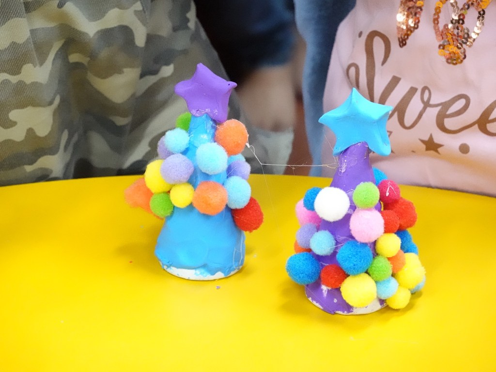 還有手作毛球聖誕樹桌燈、透明聖誕吊飾球、聖誕創意感官盆等DIY課程,看到獨一無二的作品完成,小朋友都開心的笑了,也在過程中增進了親子感情。大小朋友在濃濃的聖誕節氣氛中,一起同樂歡喜迎佳節。