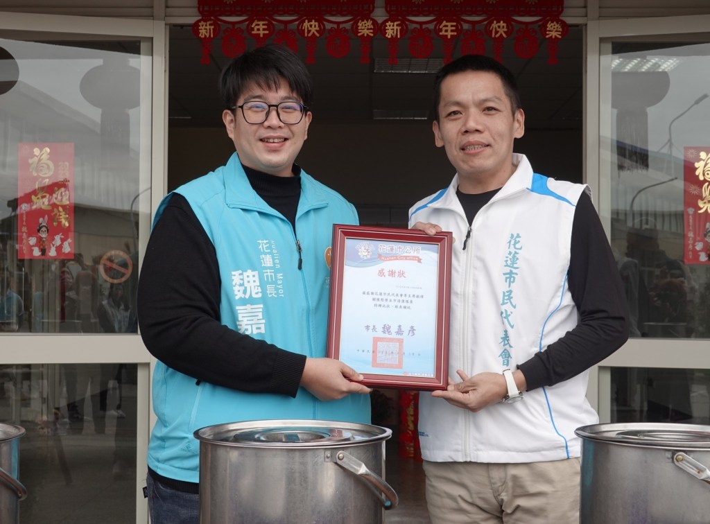 魏市長感謝吳東昇議員及李振瑋主席等人在歲末年終慰勞清潔隊員,他說,這幾天的氣溫驟降,民代們提供應景的羊肉爐,正好讓隊員們暖心暖胃。魏嘉彥指出,清潔隊員在天還未亮時,已在街道上打掃及割草,深夜時刻則執行垃圾清運的工作,這些都是隊員們的生活日常。而在防汛期前清溝、夏季進行環境消毒,颱風過境或有重大災害發生時,則全數投入恢復家園的工作,他們在職場上堅守崗位,為環境清淨付出心力,也是維繫花蓮市容整潔的幕後英雄,感謝社會各界對清潔隊員的關切。