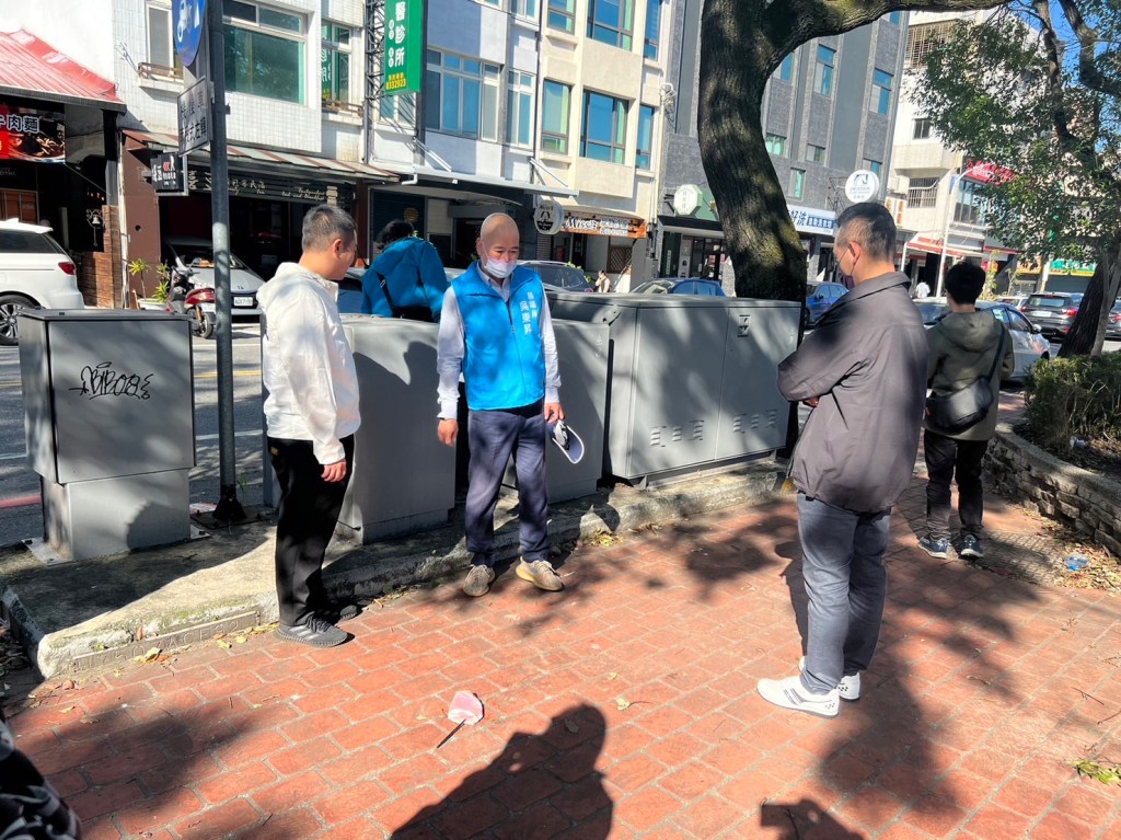 日前有民眾陳情,位於商校街一處因台電電箱設置於人行道上,嚴重影響行人通行的動線,造成用路人的不便,今(31)日縣議員吳東昇、市民代表魏鈺晟、游政霖十分關心市民之用路安全,邀集相關單位至現場進行會勘。