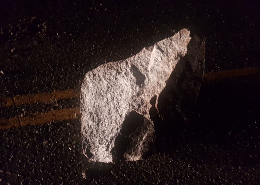 今(6)日傍晚18時左右,新城警分局接獲報案指稱於台9丁線61.8公里處(和仁隧道前)有機車事故,當警方抵達事故現場時,發現是有一顆不小落石導致正在通行的大型重型機車摔車,造成機車騎士受傷。