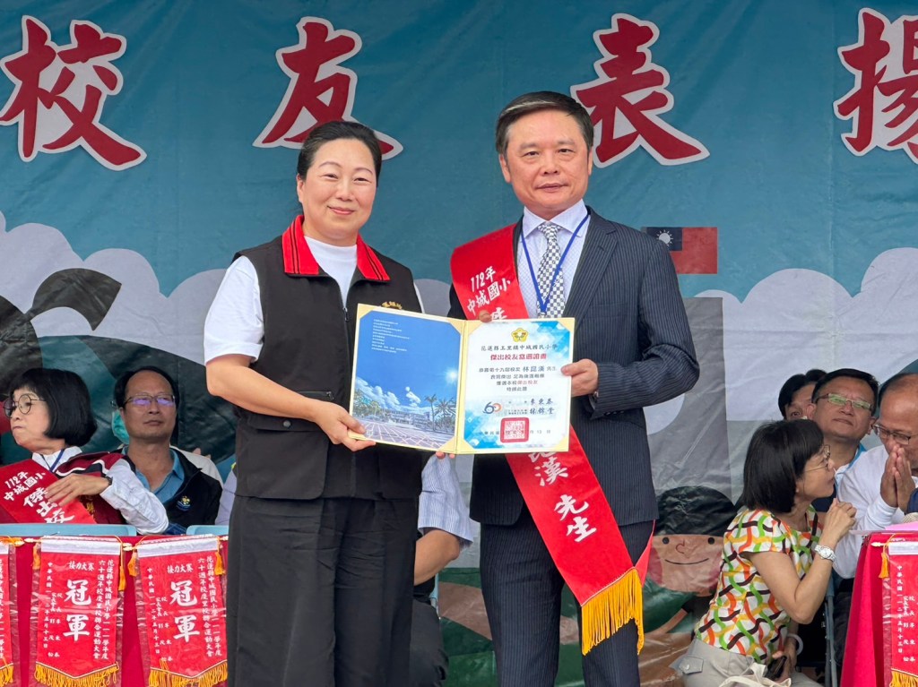 花蓮縣立中城國小歡慶60週年校慶,舉辦系列活動,包含食農教育之彩繪稻田種植體驗活動、音樂學習成果發表會、里校聯合運動大會、傑出校友表揚典禮以及校友回娘家/時光懷舊教室,花蓮縣長徐榛蔚今(13)日特別前往一同歡慶、致意,並頒贈傑出校友當選證書,鼓勵學童充實自我、汲取新知。