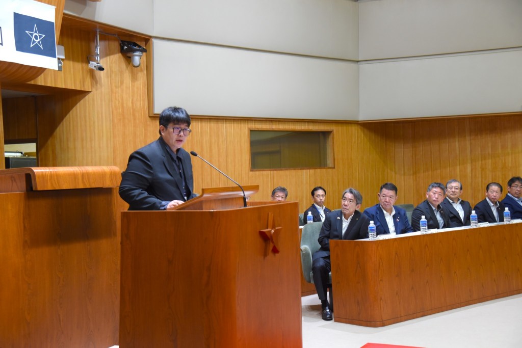 蝦名市長致詞時特別強調很高興看到大家,他還記得今年一月參訪花蓮市時受到熱情接待,也感謝魏市長當時允諾回訪,不到幾個月就兌現諾言了。蝦名市長感謝粘信士處長所做的一切努力,因為釧路市與花蓮市有許多的共同點,除了是面向太平洋的旅遊城市之外,更擁有珍貴的自然環境和原住民文化,基於這樣的背景,兩市在去年八月締結友好交流協議,未來希望能往觀光旅遊的方向進一步交流。