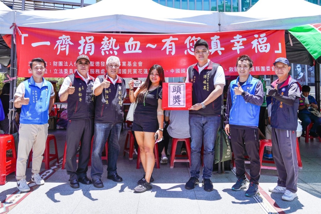 財團法人佛祖關聖德發慈善事業基金會與立法委員傅崐萁服務處昨(8)日於花蓮遠東百貨大門口攜手辦理「一齊捐熱血 有您真幸福!」捐血活動,吸引眾多鄉親踴躍參與,共捐得413袋血液,超過十萬三千C.C.。