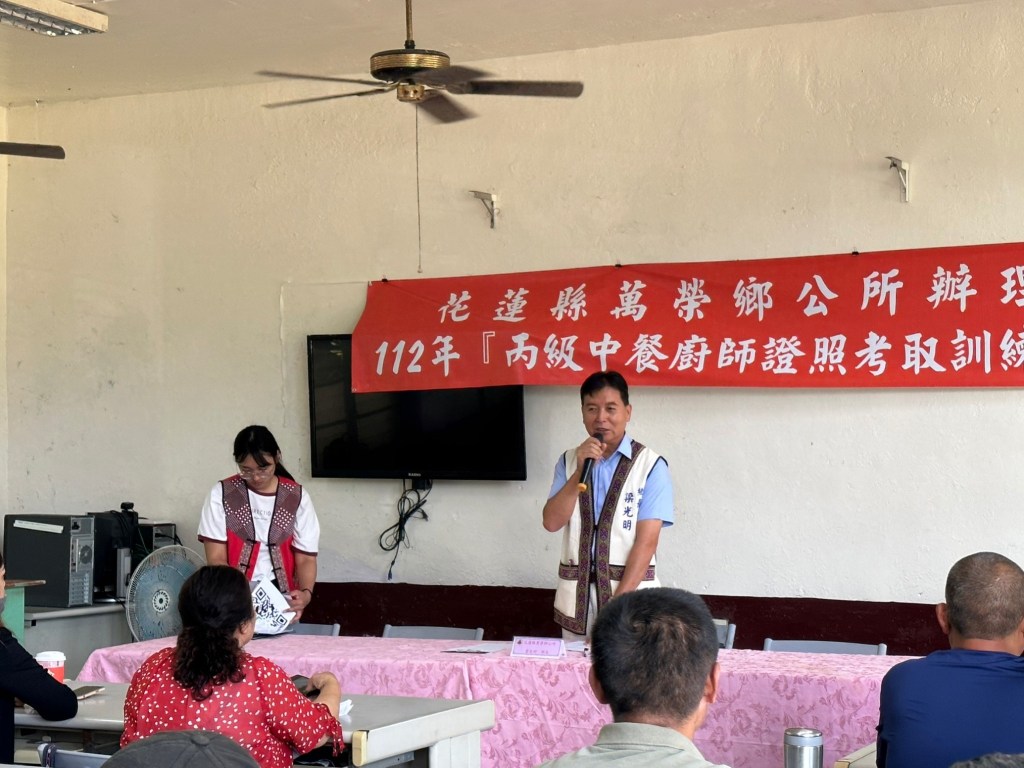 萬榮鄉丙級中餐廚師證照考取訓練課程正式開班!為培力餐飲人才,輔導鄉民發展餐飲事業,萬榮鄉公所辦理丙級中餐廚師證照考取訓練班計畫,昨(15)日辦理開訓典禮,為期近二個月。