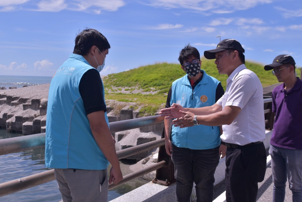 市長魏嘉彥在工程隊長余世崘的陪同下,與建設處長鄧子榆及下水道科於南濱出海口進行實地勘查。鄧子榆表示,目前正值漲潮期間,依據判斷現行淤沙情形並不嚴重,縣府將持續關注,必要時將在安全情況下執行清疏工作,以避免排水不順或海水倒灌等情形發生。