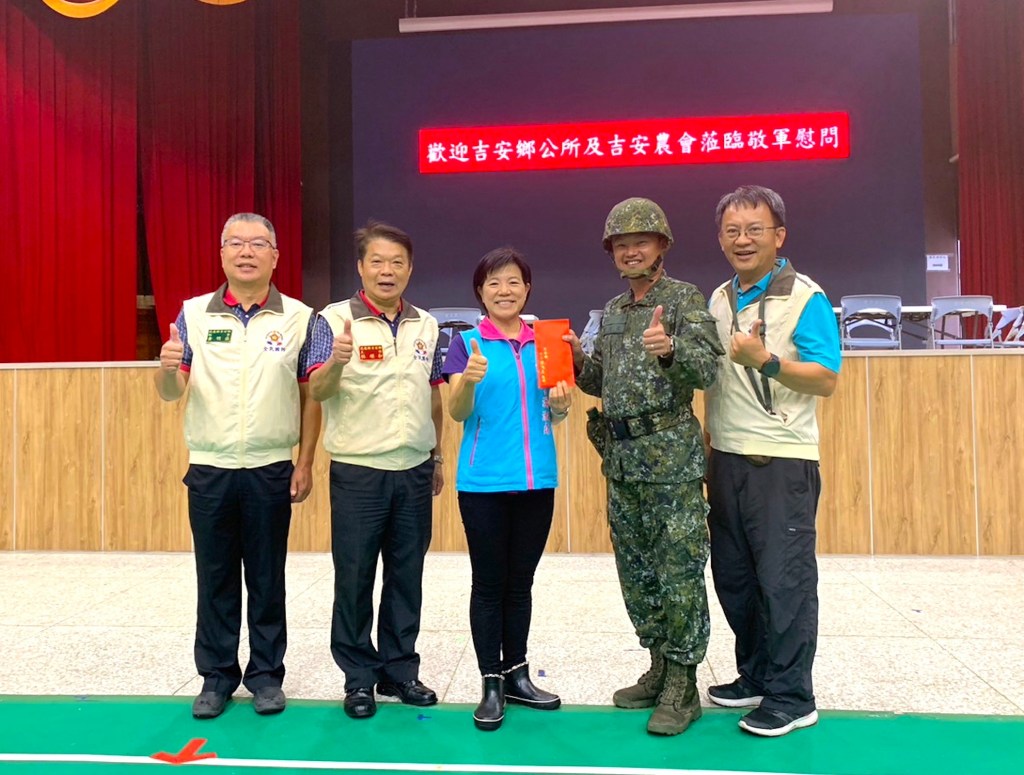 花蓮縣112年度後備軍人教育召集訓練,7月22日至28日分別於四個場地進行,其中吉安鄉後備教召在宜昌國小辦理,人數為116人全縣最多,鄉長游淑貞組吉安鄉敬軍關懷團慰勞後備教召軍人,特別會同吉安鄉農會張德奇總幹事、吉安鄉後備軍人輔導中心主任林順和、秘書黃明盛等人到場為教召後備軍人加油打氣,希望秉持軍人為國家犧牲奉獻精神,維持最佳體能戰鬥訓練。前往慰問同時,致贈加菜金六萬元、吉安鄉好米補充體力、外加620份幸福蛋糕無分區域的分享給全部後備旅受訓人員,用甜甜溫馨關懷帶來滿滿感謝之意,旅長劉剛毅上校特頒感謝狀向游鄉長和吉安鄉團隊致謝。