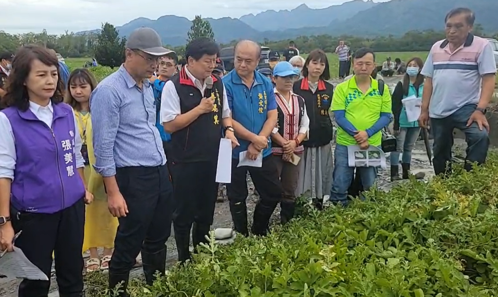 立委傅崐萁表示,鳳林中心埔西瓜二期作栽培面積約150公頃,品種有小果西瓜等,再過2個星期就可採收,但卻遭颱風豪雨侵襲,導致瓜農損失慘重。他感謝農委會陳吉仲主委第一時間至現場勘災,希望農委會全力協助農民,盡量減少農民損失!農委會主委陳吉仲當場允諾,為加速補助業務,農委會將修正天然災害救助辦法,救助項目適用農委會公告的災害性天氣參數,經公告且農民提出申請,鄉鎮公所可免現勘,確認種植事實就可救助。鳳林、玉里西瓜因降雨量達到規定,農委會今天將公告,每公頃救助6.2萬元,另農糧署提供每公頃2萬元有機資材補助。