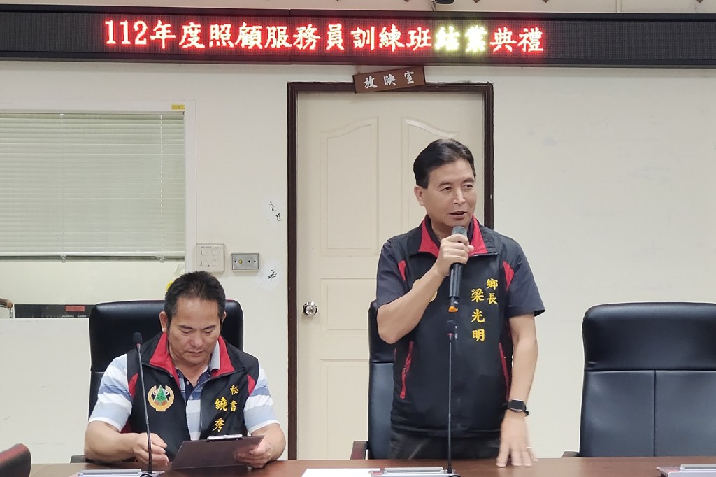 萬榮鄉鄉長梁光明親自頒發結業證書給學員們,除了肯定學員們的用心,期盼學員能將所學發揮在部落長輩的照顧上,幫助部落需要的長者,減輕家庭中照顧者的負擔,讓被照顧者感受熟悉的溫暖,提升照護品質,以達到自己人照顧自己的最終目標。