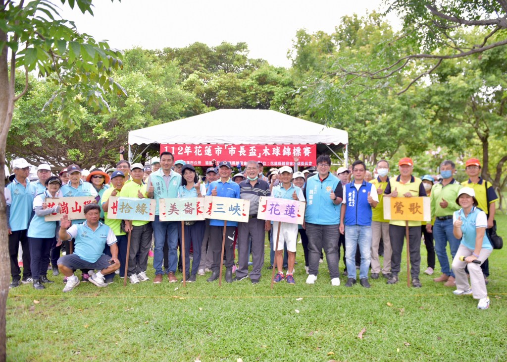 112年花蓮市市長盃木球錦標賽於今(29)日在化道路球崙運動公園舉辦,近百名選手熱情參與,市長魏嘉彥、議員傅國淵、市民代表黃瑞文特地到場為比賽進行開球,並為選手們加油打氣,希望大家都能以球會友、切磋球技,順利奪得佳績。