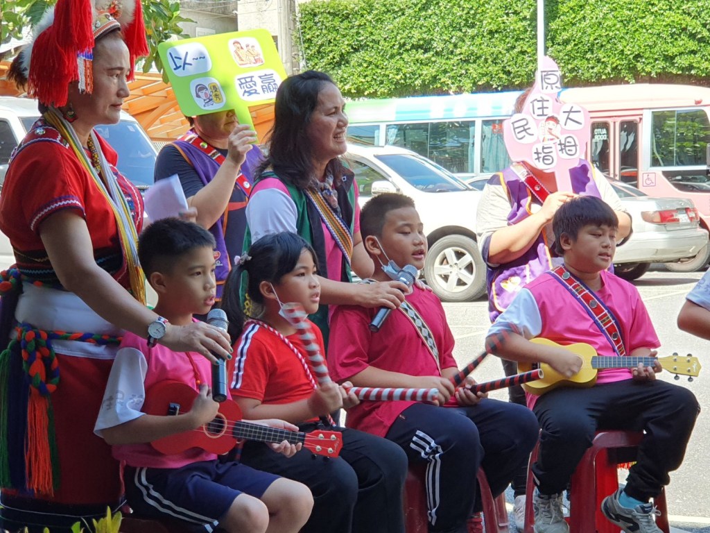 鳳林部落圖書資訊站的同學們,一日在族人與志工帶領下,陸續前往鳳林鎮公所等各機關,透過音樂、舞蹈分享全國原住民日喜悅,讓更多人認識、了解原住民族。鳳林鎮公所的原住民同仁亦換上自己的族服,以行動表達對自己族群、文化的認同。
