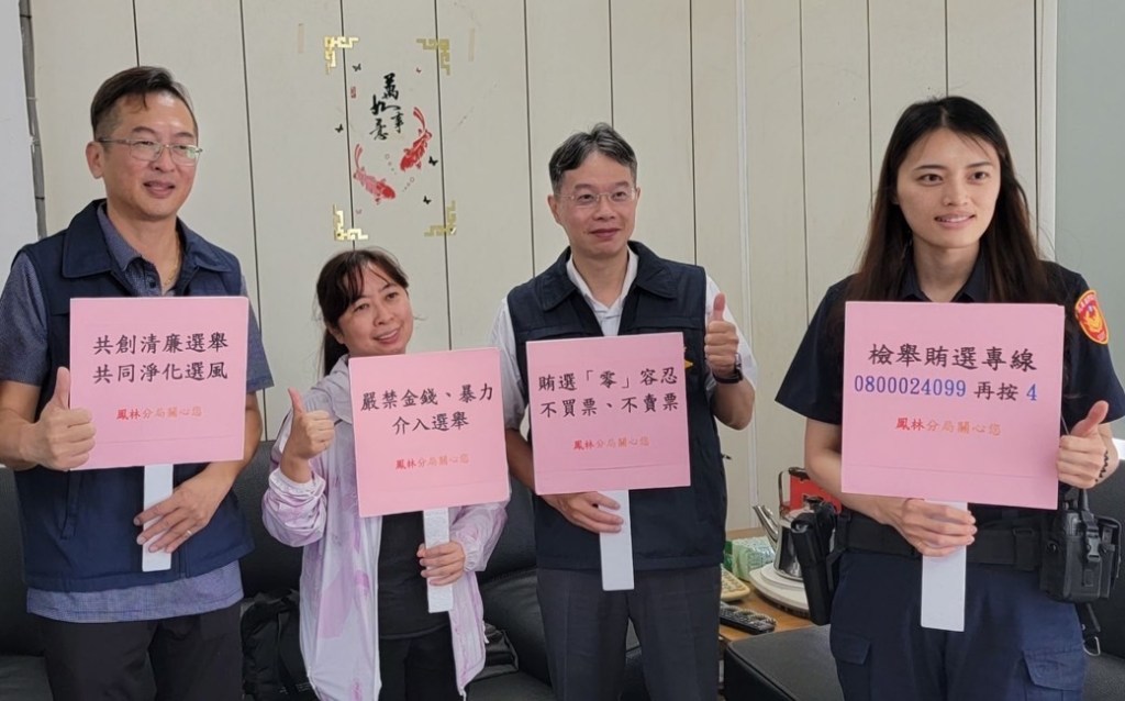 鳳林警分局提醒民眾,投入資本賄選的候選人,在當選以後勢必會用不法手段,回收賄選的成本,將會造成地方公共建設及利益的損失,分局將堅守賄選「零」容忍的態度,嚴禁金錢、暴力介入選舉,呼籲民眾「不買票、不賣票」,如有賄選情資請聯繫警方或是撥打檢舉賄選專線「0800024099再按4」如經查證屬實將有優或的檢舉獎金。