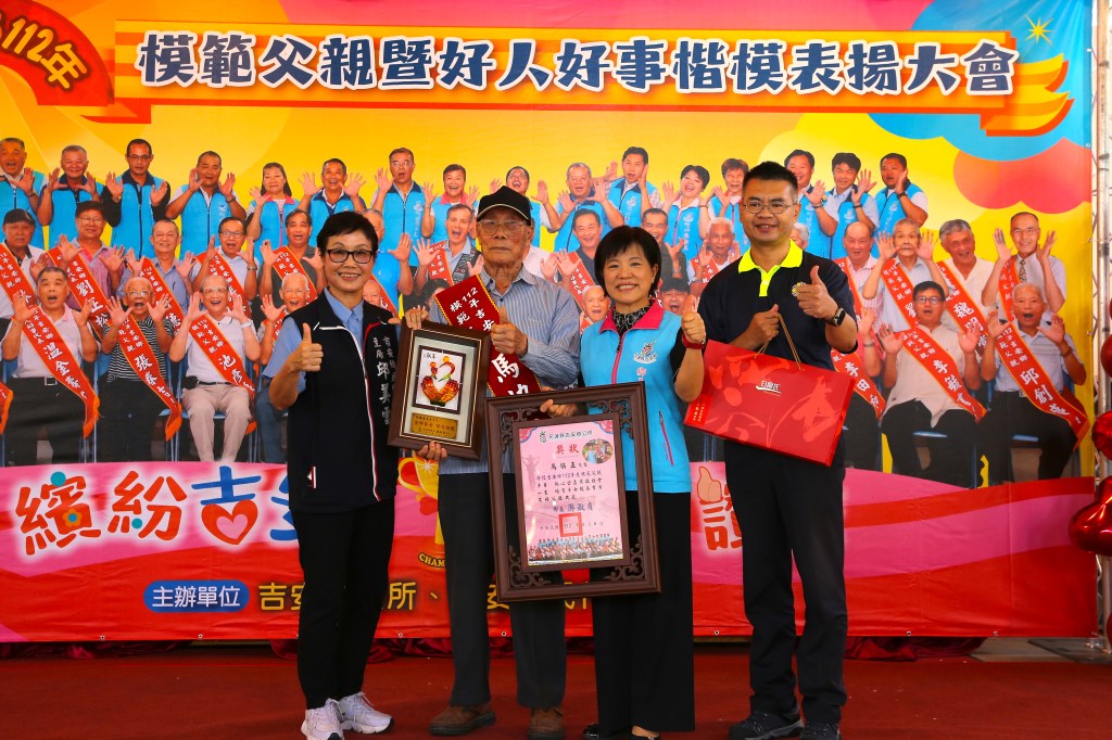 吉安鄉公所創意模範父親表揚以「金牌爸爸、好人好事」為主題,頒發家庭與社會楷模,由各村遴選提報候選人,歷經評選委員客觀討論後產生今年24位模範父親及10位好人好事代表,於6日下午由鄉長游淑貞、代表會主席邱美雲及代表們逐一頒贈客製化獎狀,肯定父親堅定力量成為穩定家庭基石,嘉勉社會無私奉獻己力的好人好事志工模範,帶來家庭的安定和樂與社會正向運行能量。縣長徐榛蔚也親至現場給予模範父親們恭賀,並肯定吉安鄉五年來卓越的施政成績,共構縣鄉友善和樂作為。