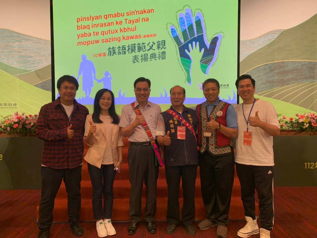 原住民族委員會8日於臺北圓山大飯店辦理112年度「族語模範父親表揚典禮」,由夷將.拔路兒Icyang‧Parod主任委員頒獎。今年全國共甄選出原住民族16族57位族語模範父親,其中花蓮縣共有12位榮獲殊榮。
